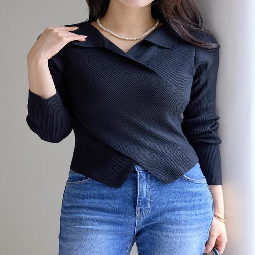 니트 니트롱 슬림핏 여성 골지니트 여리여리 V넥 (3ipW3)