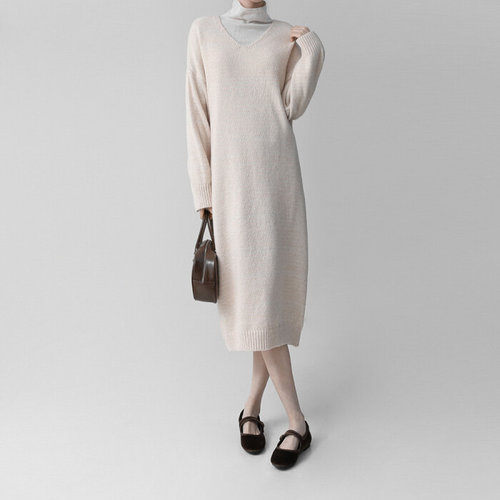 더모즈 / 단독 브이라인 니트 롱 원피스 3컬러