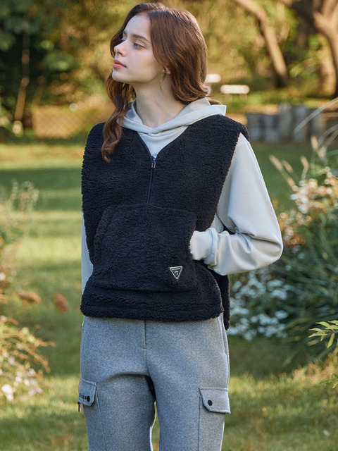[챌린저] 여성 보아플리스 캥거루포켓 스누드 베스트 블랙