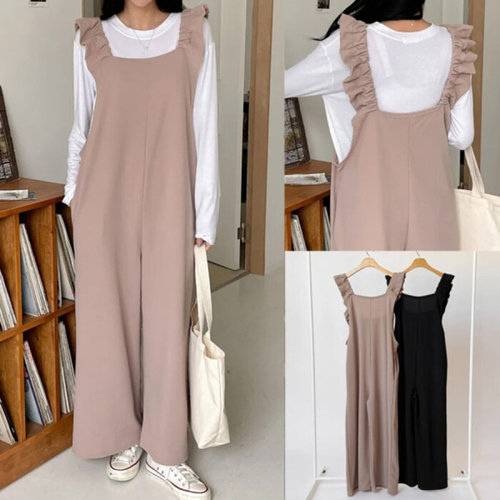 [옷자락]여성 캐주얼 딥브이넥 뒷지퍼 와이드핏 점프수트