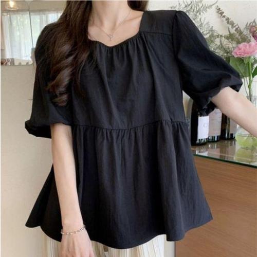 [에이치플러스몰]루즈핏 인기 여성 퍼프 백리스 감성 블라우스 여름 시