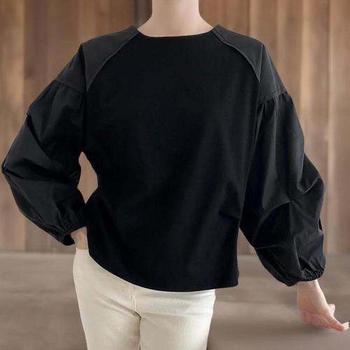 [다잇템]여성 박시핏 잔주름 조합 벌룬 라글란 블라우스
