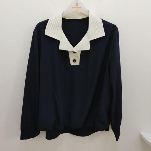 [올포유]가을 여성 니트카라 블라우스(네이비) ALBLN7141