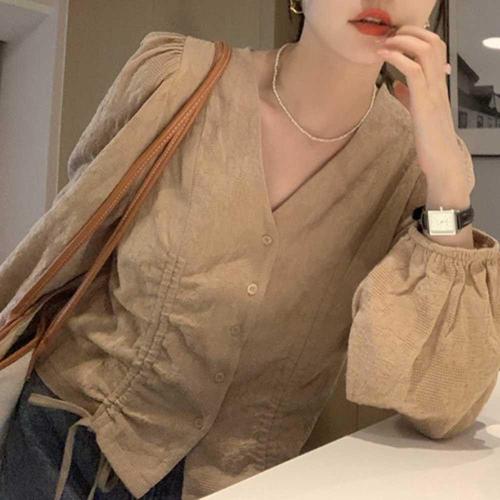 [올포유]가을 여성 밑단 시보리 포인트 블라우스 오버핏(카키,아이보리) ALBLN7331