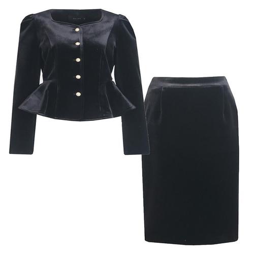 [비비드시크릿가너]SET 여성 리앤 벨벳 겨울 블라우스+미디스커트 세트
