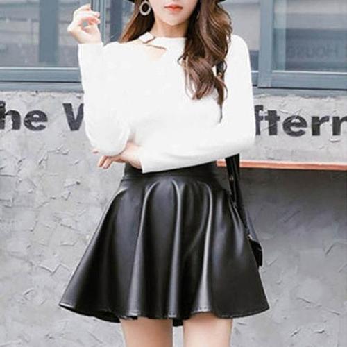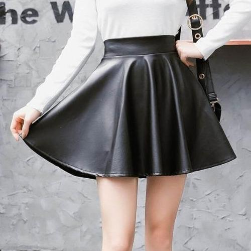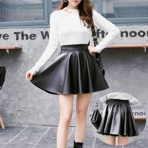 [엄지척]여자 블랙 가죽 스커트 플레어 A라인 미니 레더 치마_19959395_667501