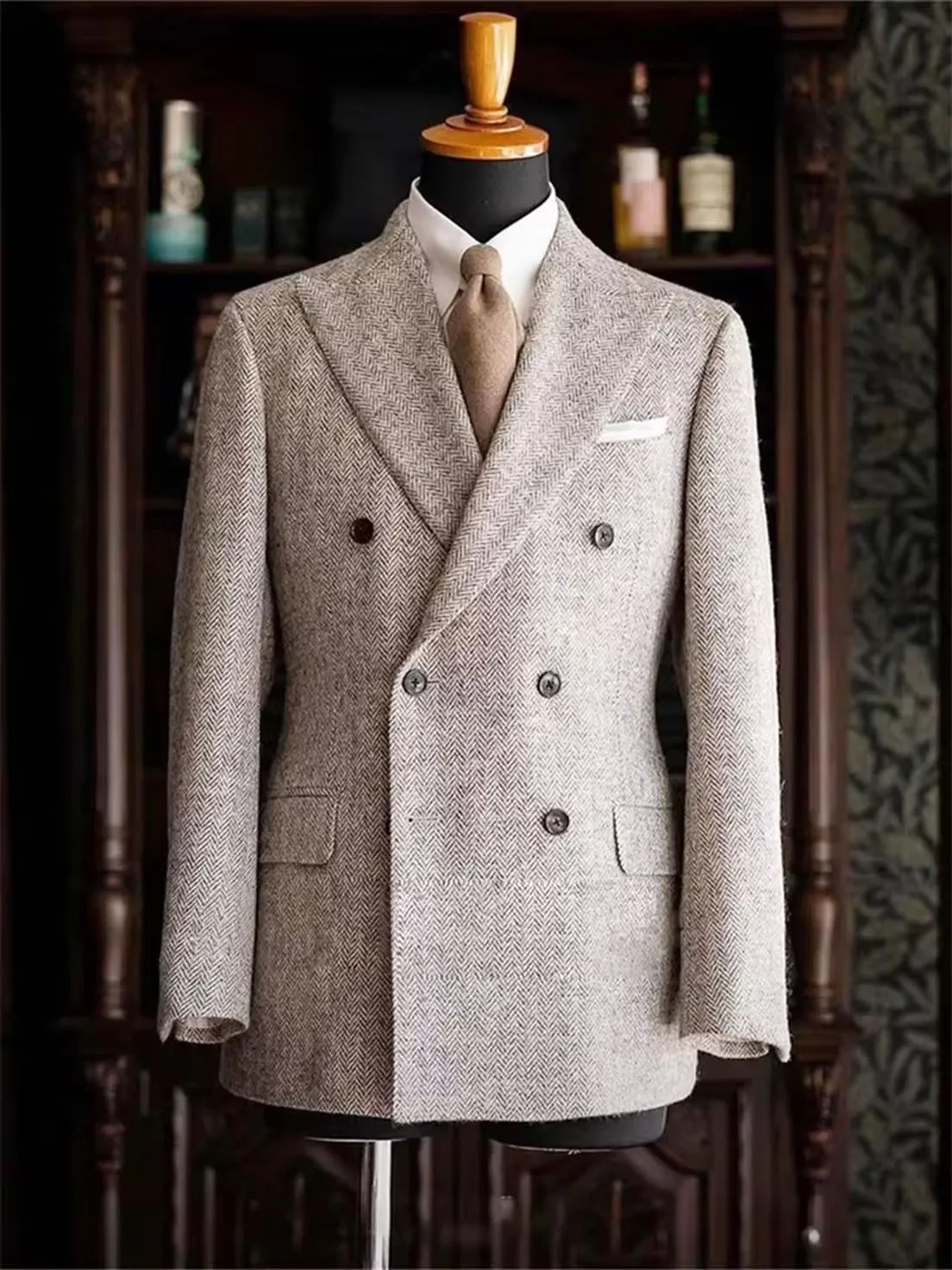 남성용 헤링본 슬림핏 캐주얼 블레이저 더블 브레스티드 스타일리시 편안한 재킷 코트 남성 정장용