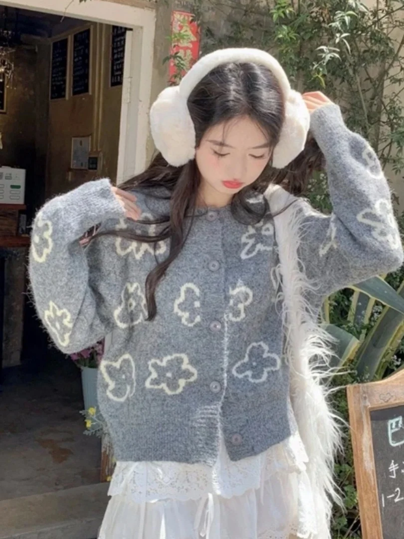 TEMU 빈티지 가디건 - 두꺼운 따뜻한 겨울 재킷, 솔리드 컬러 라운드넥 스웨터코트, 한국 스타일 가을 아우터웨어, 세탁기 사용 가능한 추운 날씨용 블라우스|가디건|빈티지