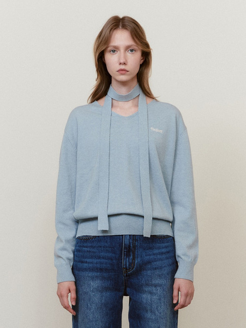 [팔렛] 스몰 스토리 로고 브이넥 니트 스카이 블루