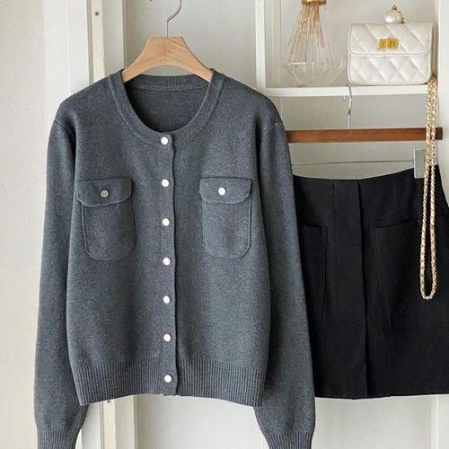 [신상오픈런]여성 클래식 비스코스 두 포켓 심플 긴팔 가디건
