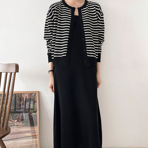플러리싱 / 비스코스 단가라 가디건 롱원피스 set 플러리싱