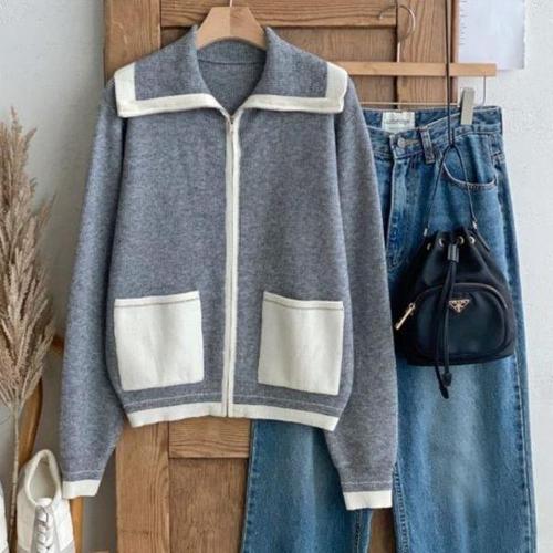 [다잇템][다잇템] 여성용 비스코스 콘트라스트 집업 주머니 가디건_22894679_588872