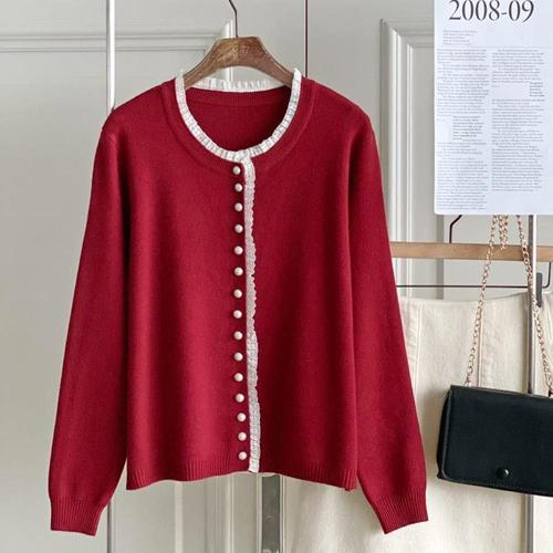 [미라클세븐]여성 클래식 비스코스 레이스 프릴 니트 카디건