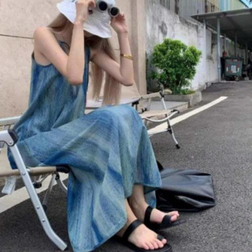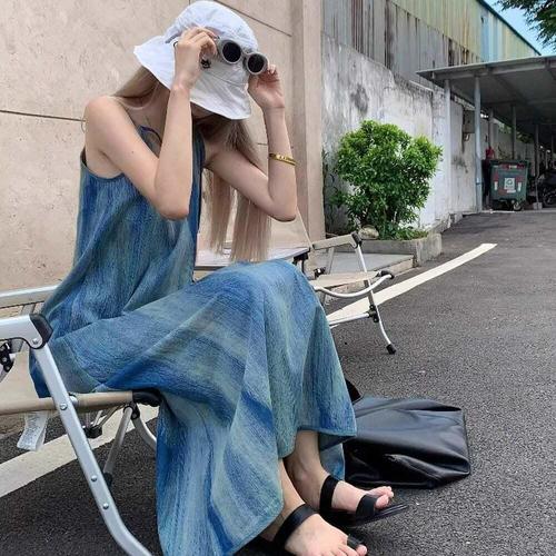 [오노마] ONM 여자 마림 블루 색상 비치룩 휴양지룩 끈나시 원피스