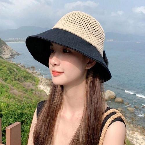 [에이치플러스몰]빅리본 버킷햇 비치 모자 메쉬 밀짚 여름 햇 4컬러
