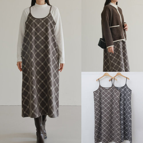 나야홍 / 위쉬몰 LY 사선체크끈나시원피스(V738H511) 빅사이즈