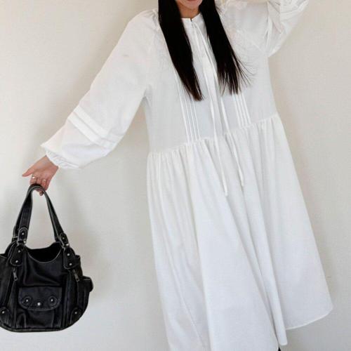 [다잇템]여성 핀턱 라글란 빅사이즈 U넥 리본 롱드레스