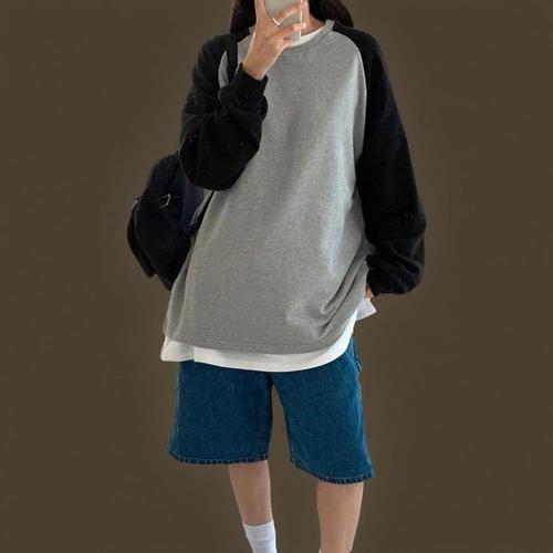 배색 나그랑 오버핏 긴팔 티셔츠 (KI007)