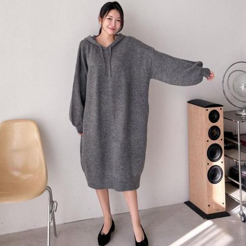 [문에이블]문에이블 여자 여성 봄 가을 간절기 루즈핏 빅사이즈 후드 롱 니트 원피스