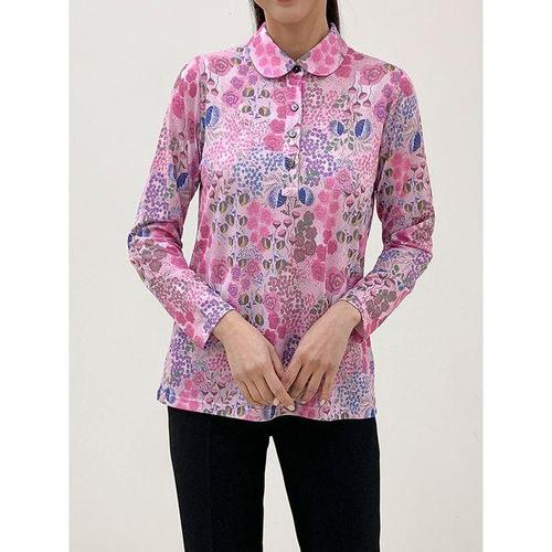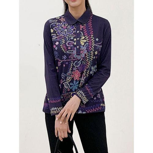 [드리다]여성 봄 가을 플라워 패턴 카라 빅사이즈 긴팔 티셔츠 40-50대 중년여성 엄마옷 모임 선물