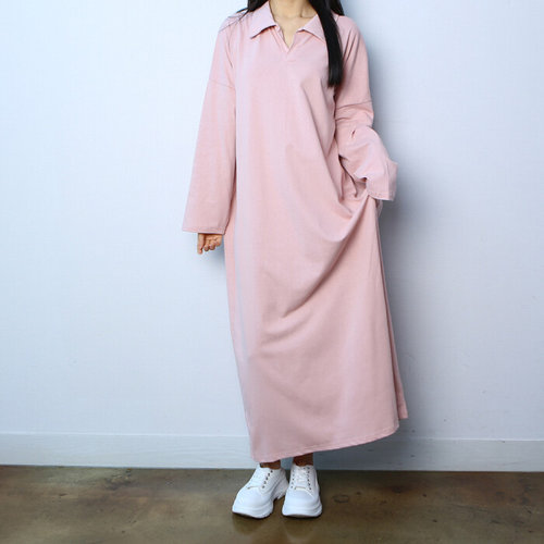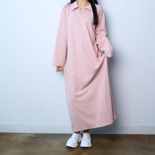 [파라노말샵](빅사이즈) 4색 카라 오버핏 긴팔 롱 원피스 원마일