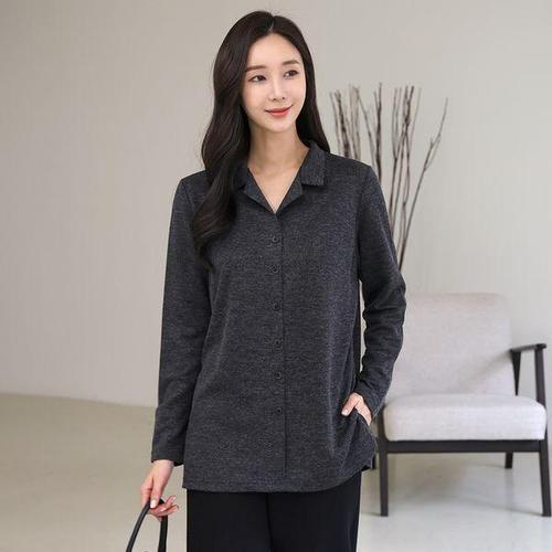 [드리다]중년여성옷 가을 겨울 카라 브이넥 빅사이즈 티셔츠 40-50대 미시 엄마옷 등원 출근 모임 하객