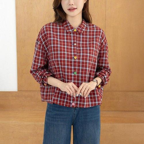[디얼마미][디얼마미] 쿠키 체크 카라 면남방 /마담 미시 중년 여성 빅사이즈 40대 50대