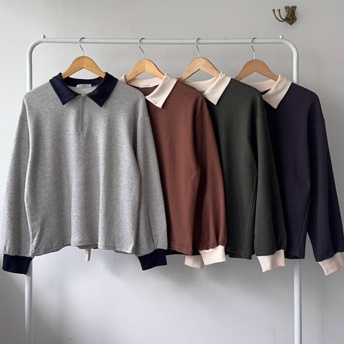 나야홍 / 빅사이즈티 V595L511 배색집업카라맨투맨 TC