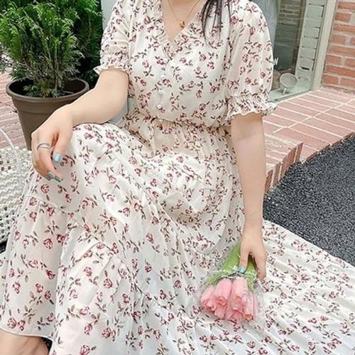 [옷자락]여자 빅사이즈 꽃무늬 캉캉 원피스