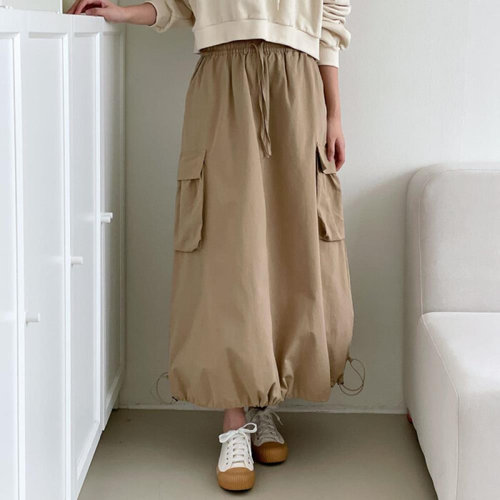 [옷자락]여자 카고치마 스트링 A라인 끈밴딩 빅사이즈 롱스커트