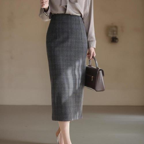 [미라클세븐]여성 겨울 출근 패션 H라인 트임 롱 체크 스커트 빅사이즈