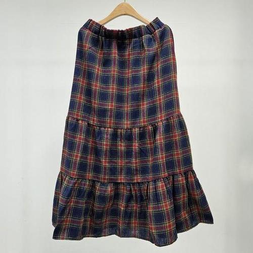 [신상오픈런]여성 체크 패턴 프릴 롱 스커트 빅사이즈 A라인 스커트