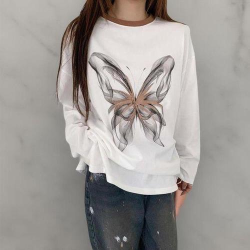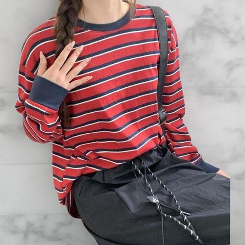 [다잇템][다잇템] 여성 디자인 빅사이즈 라운드 콘트라스트 롱슬리브 큰 티셔츠_22843031_588872