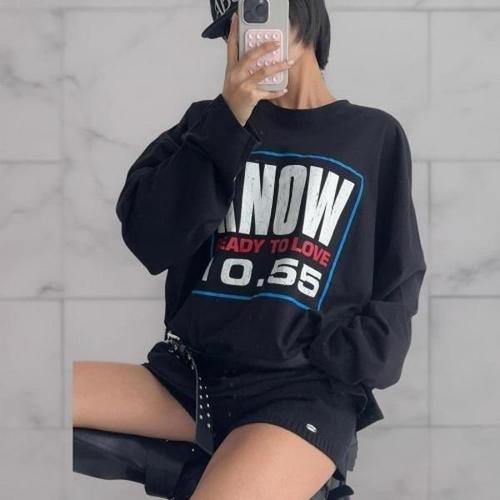 나우레터링 라운드박스 긴팔롱티셔츠 가을데일리 빅사이즈 루즈핏 레이어드 면캐주얼