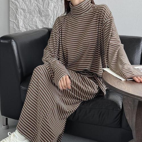 [옷자락] 여자 빅사이즈 단가라 폴라티 피치기모 롱스커트 세트