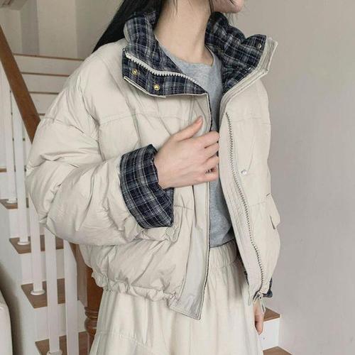[다잇템]여성 빅사이즈 캐쥬얼 폴라넥 격자 패딩점퍼
