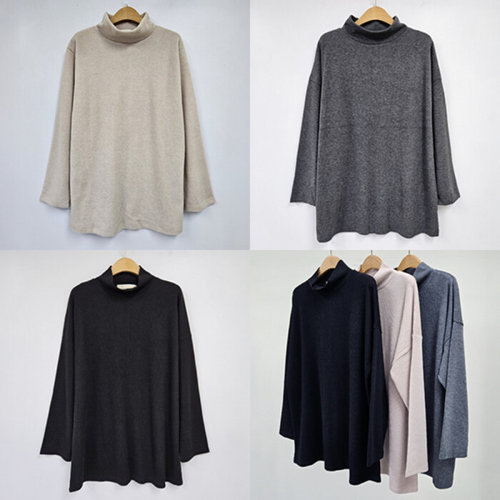 데일리 반목 폴라 티 빅사이즈 무지 루즈 심플 여성 티셔츠 66-110