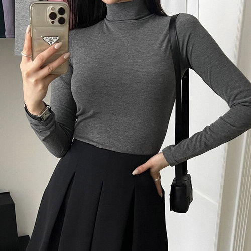 턴키 여성용 스판 하이넥 빅사이즈 반폴라 티셔츠 G-292