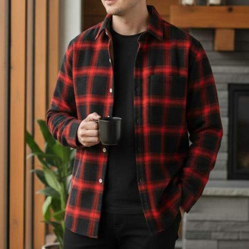 남성기모셔츠 체크무늬 남방 겨울 방한셔츠 빅사이즈 WFKZZRO