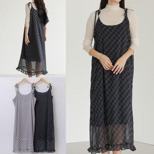 [셀러허브_여성트랜드패션]위쉬몰 LY 체크쉬폰밑프릴끈원피스(V286H509) 빅사이즈