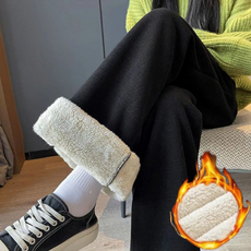 무니유유 여성 겨울 양털 빅사이즈 와이드 기모 밴딩팬츠