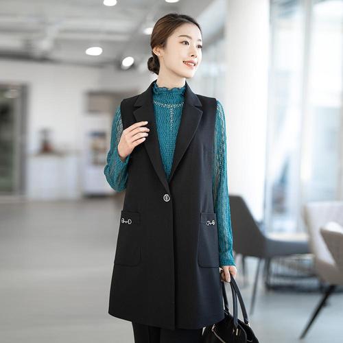 드리다 엄마옷 여성 정장 조끼 빅사이즈 장식 롱 베스트 봄 가을 50-60대 중년 마담 하객 상견례 출근 모임
