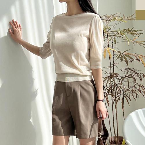 여성 겨울 반바지 5부 울 기모 스판 정장 허리 뒷밴딩 버뮤다 팬츠 여자 모직 반바지 빅사이즈