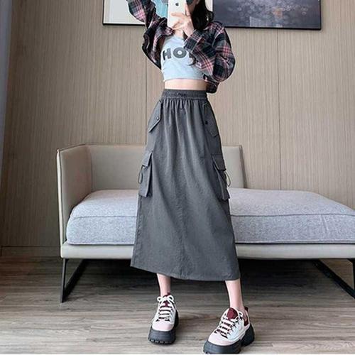 롱스커트 코디 30대 오피스룩 빅사이즈 플레어스커트 WFKXYYK