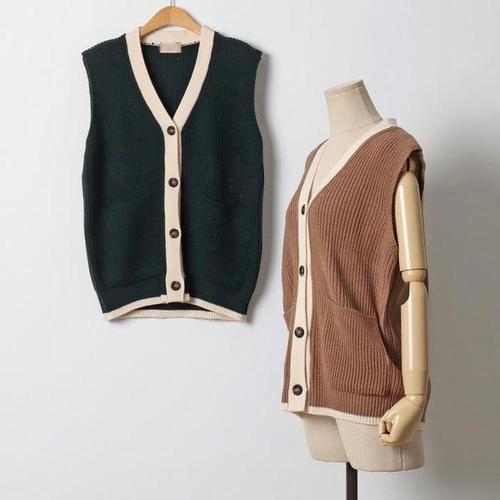 [셀러허브_여성트랜드패션]빅사이즈 601 하찌버튼배색조끼 DRMJ645