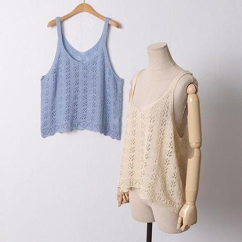 봄여름 빅사이즈 니트 스카시 조끼 롱 베스트 브이넥