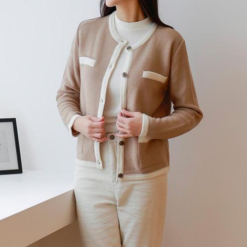 드리다 노카라 배색 빅사이즈 니트 가디건 하객 모임 미시 엄마옷