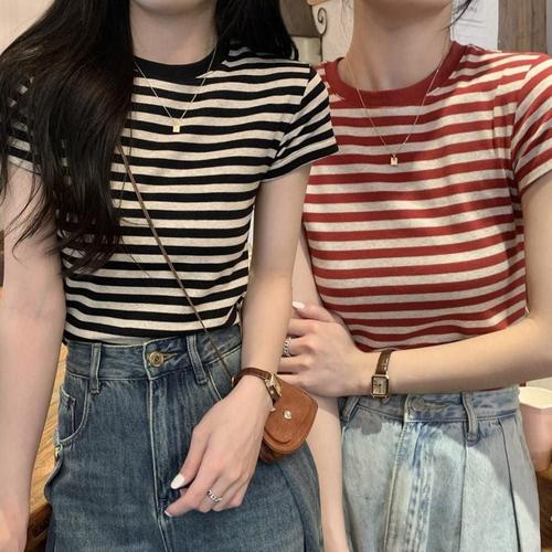 여름용 여성용 반팔 슬림핏 티셔츠 프린트 슬림핏 다용도 짧은 오프숄더 탑