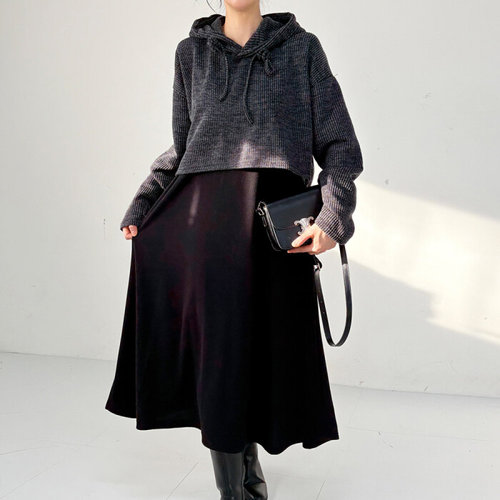 나야홍 / 빅사이즈 601 크롭후드티원피스세트 DBAX102