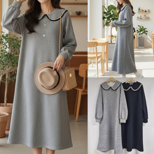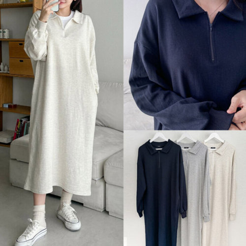 [문에이블]문에이블 겨울 여자 여성 기모 카라넥 빅사이즈 루즈핏 임산부 데일리 롱 원피스
